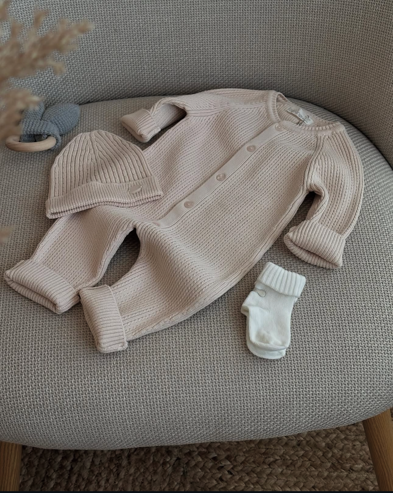 Add a touch of sweetness and style to your newborn's wardrobe with this ribbed knit set, made with love and attention to detail!