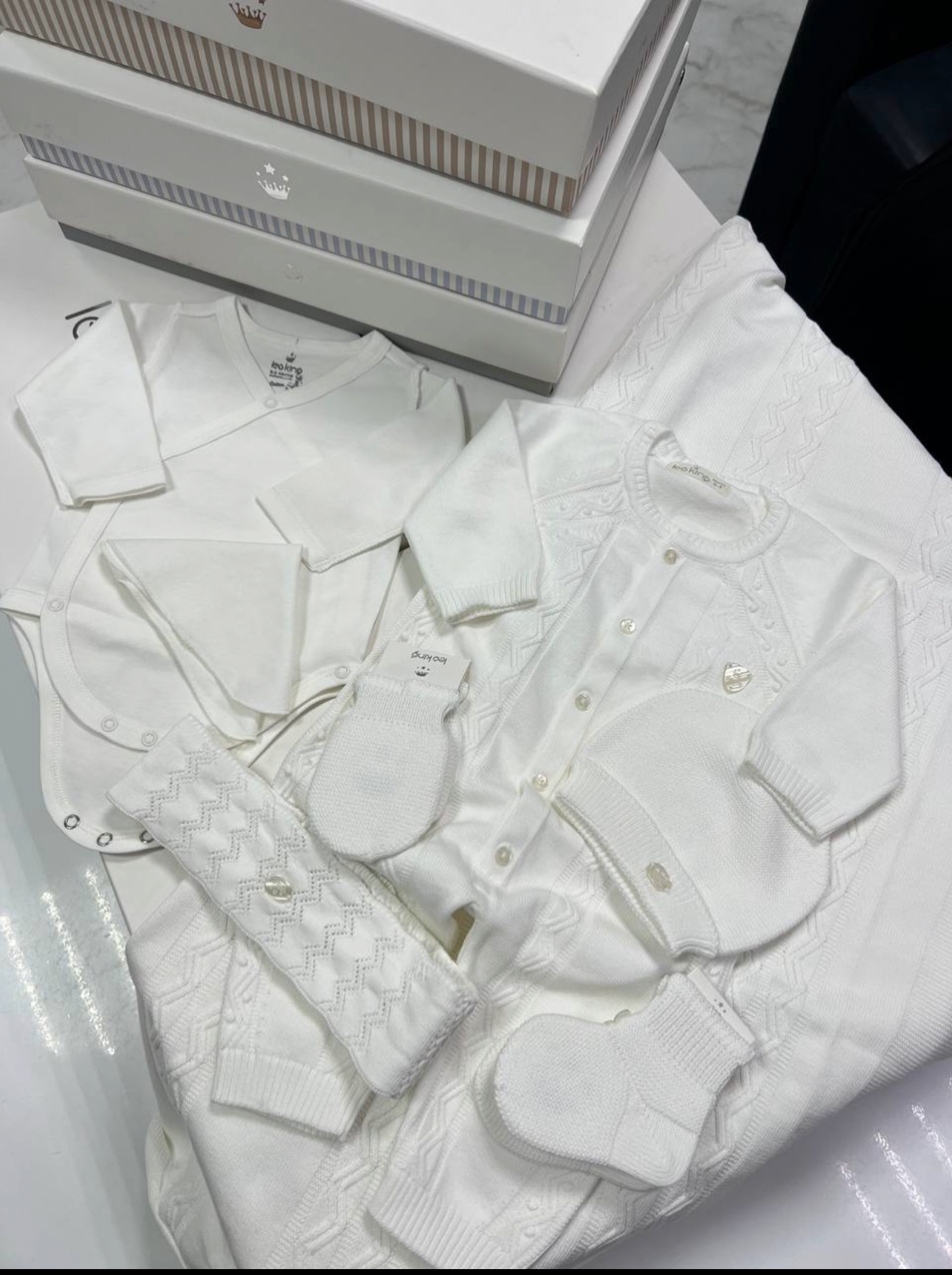 100% organic cotton knitted newborn birth set – Elegance and comfort – 8 pieces