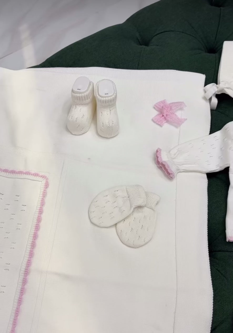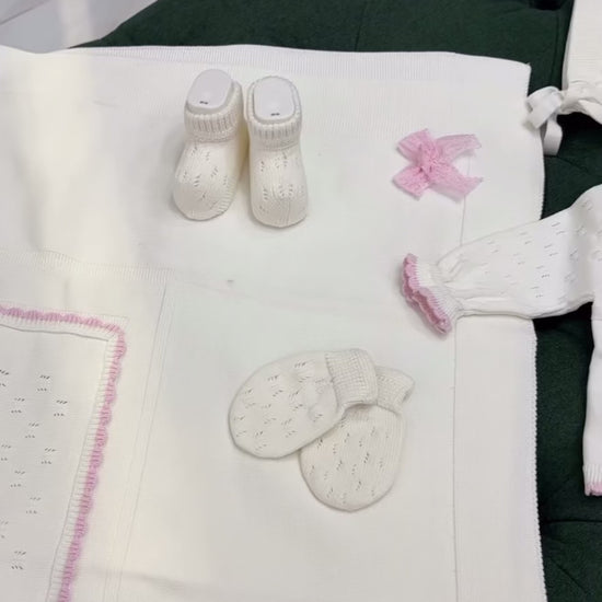 Baby Knit Set with Pink Details – 6 Pieces in Organic Cotton