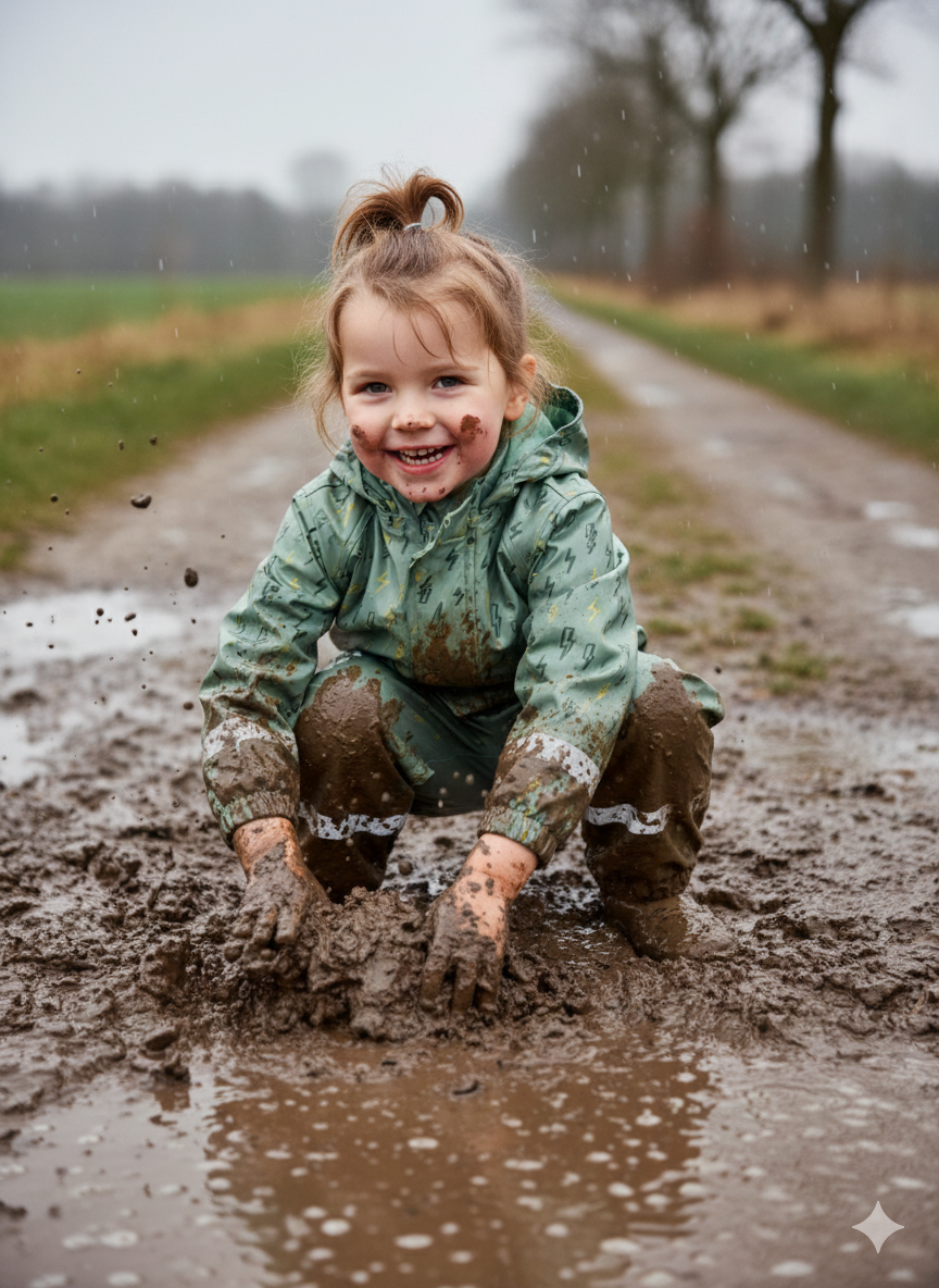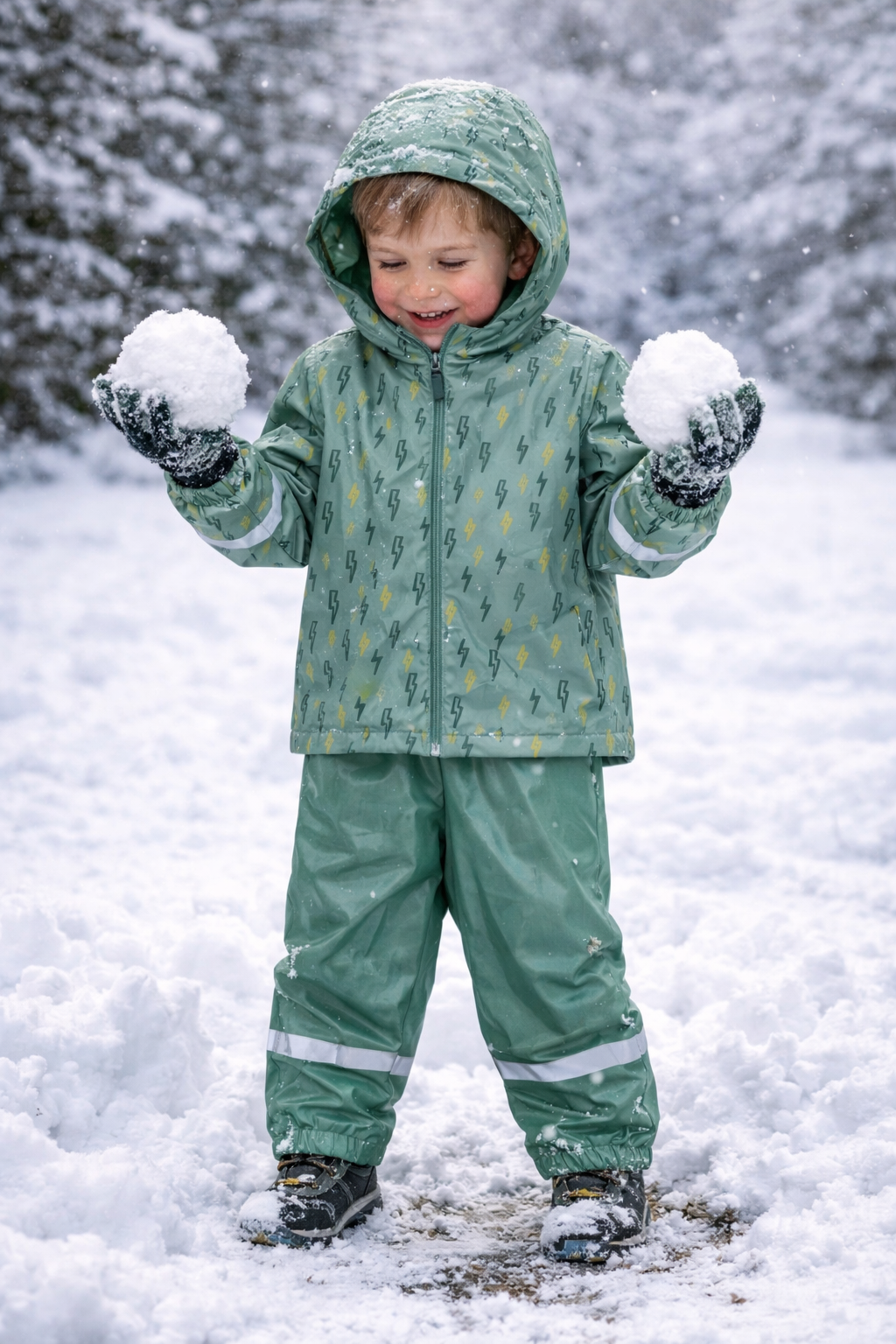 In questo modo il bambino resta asciutto all’esterno e ben protetto dal freddo, senza rinunciare alla libertà di movimento.