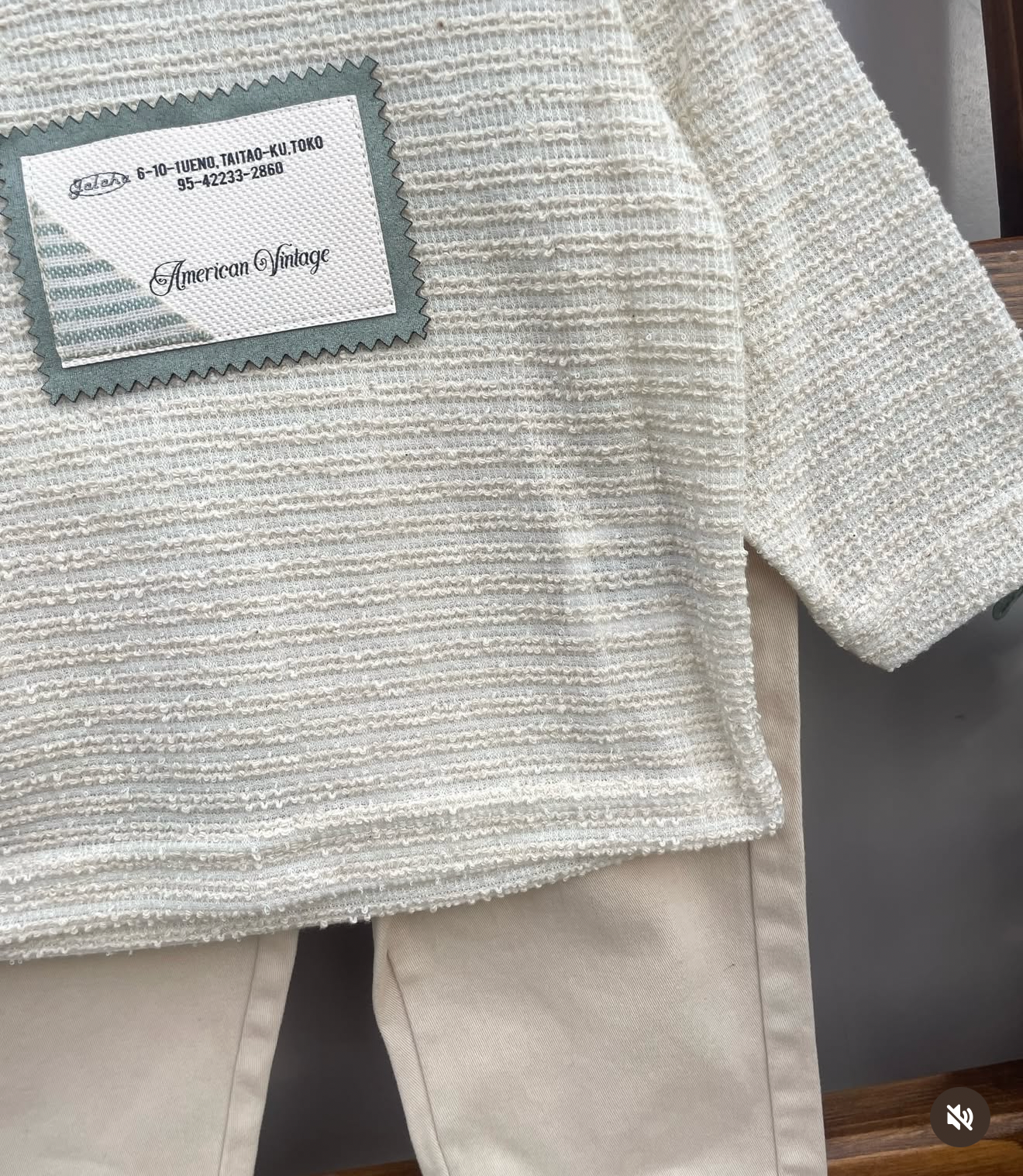 - Maglia a manica lunga color panna, 100% cotone in tessuto morbido e leggermente goffrato