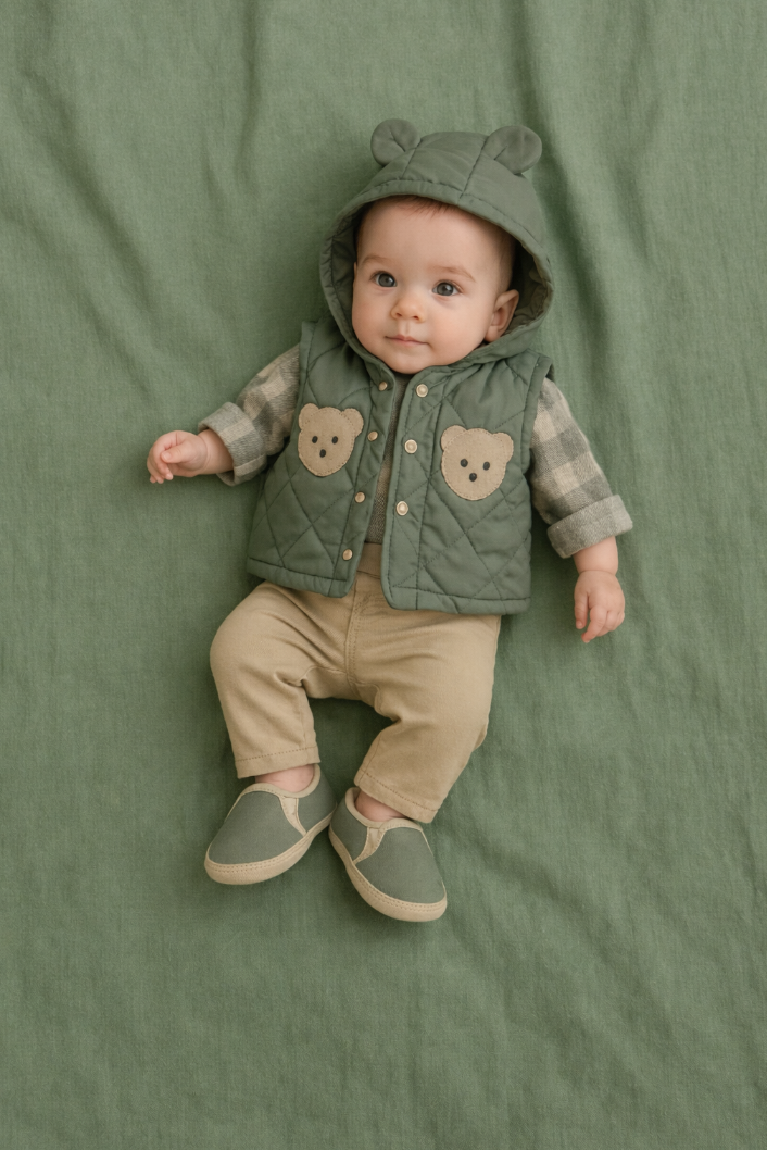 - Cappuccio con orecchiette applicate, dettaglio giocoso e irresistibile.