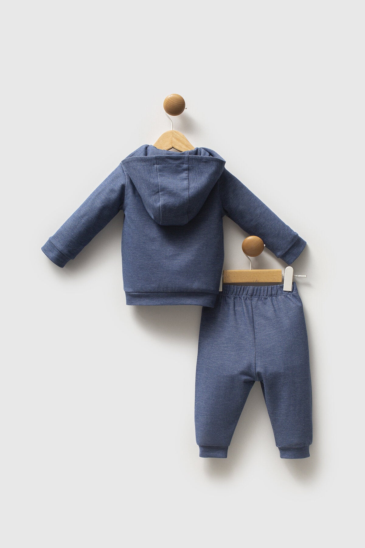 - Pantalone abbinato blu melange, con vita elasticizzata per seguire i movimenti senza stringere e garantire libertà durante gioco e passeggiate. Caviglie a polsino per tenere il pantalone in posizione e un look sempre ordinato. Anche qui dettaglio ricamato coordinato.