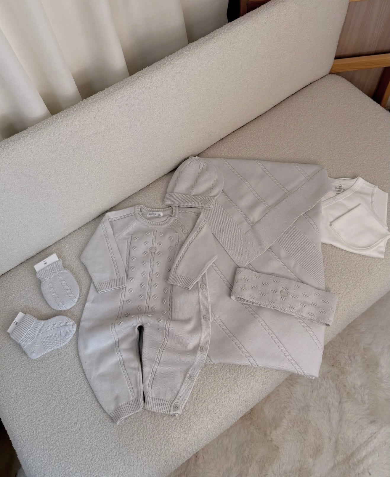 Il corredino è composto da 8 pezzi essenziali che ti accompagneranno nei momenti più belli della vita con il tuo bambino. Ogni articolo è progettato con cura per soddisfare le esigenze sia dei genitori che dei neonati. Ecco cosa include il nostro set: