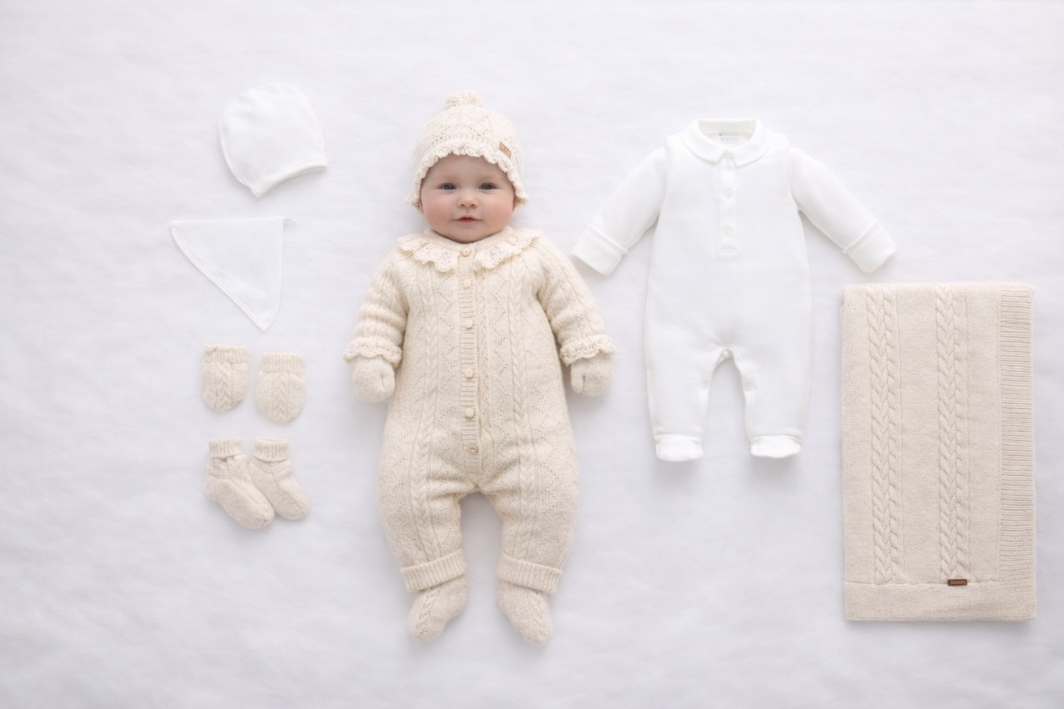 👉 La presenza del cotone all’interno garantisce comfort e delicatezza sulla pelle del neonato, mentre la maglia esterna dona eleganza e struttura.