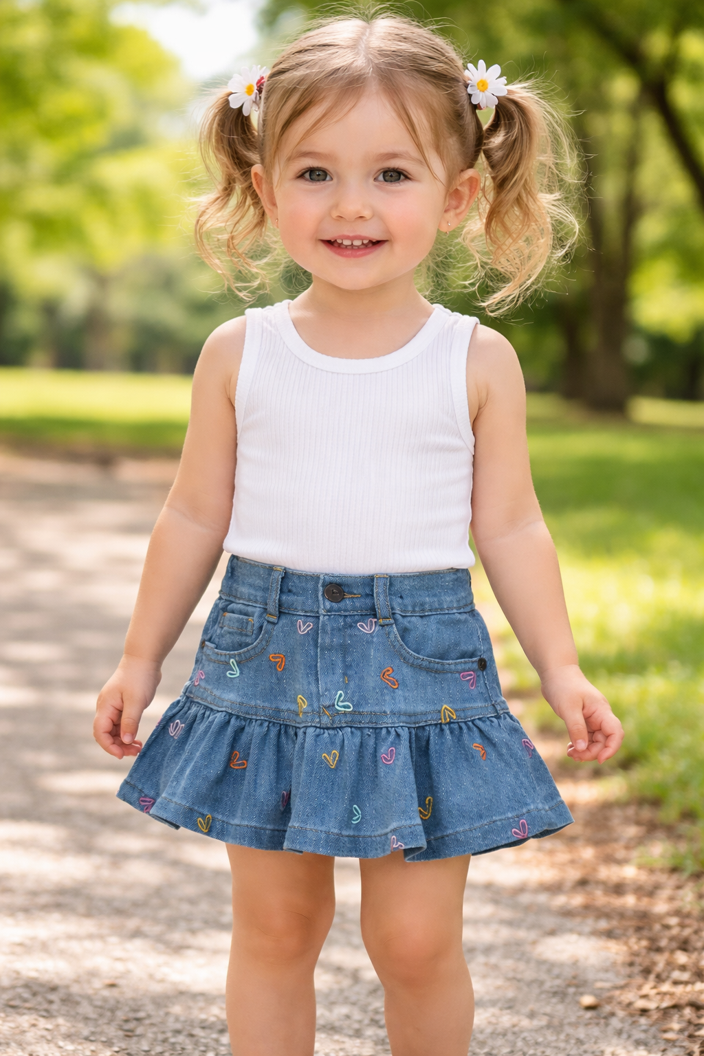 Gonnellina di jeans con cuoricini tessuto morbido ed elasticcizzato