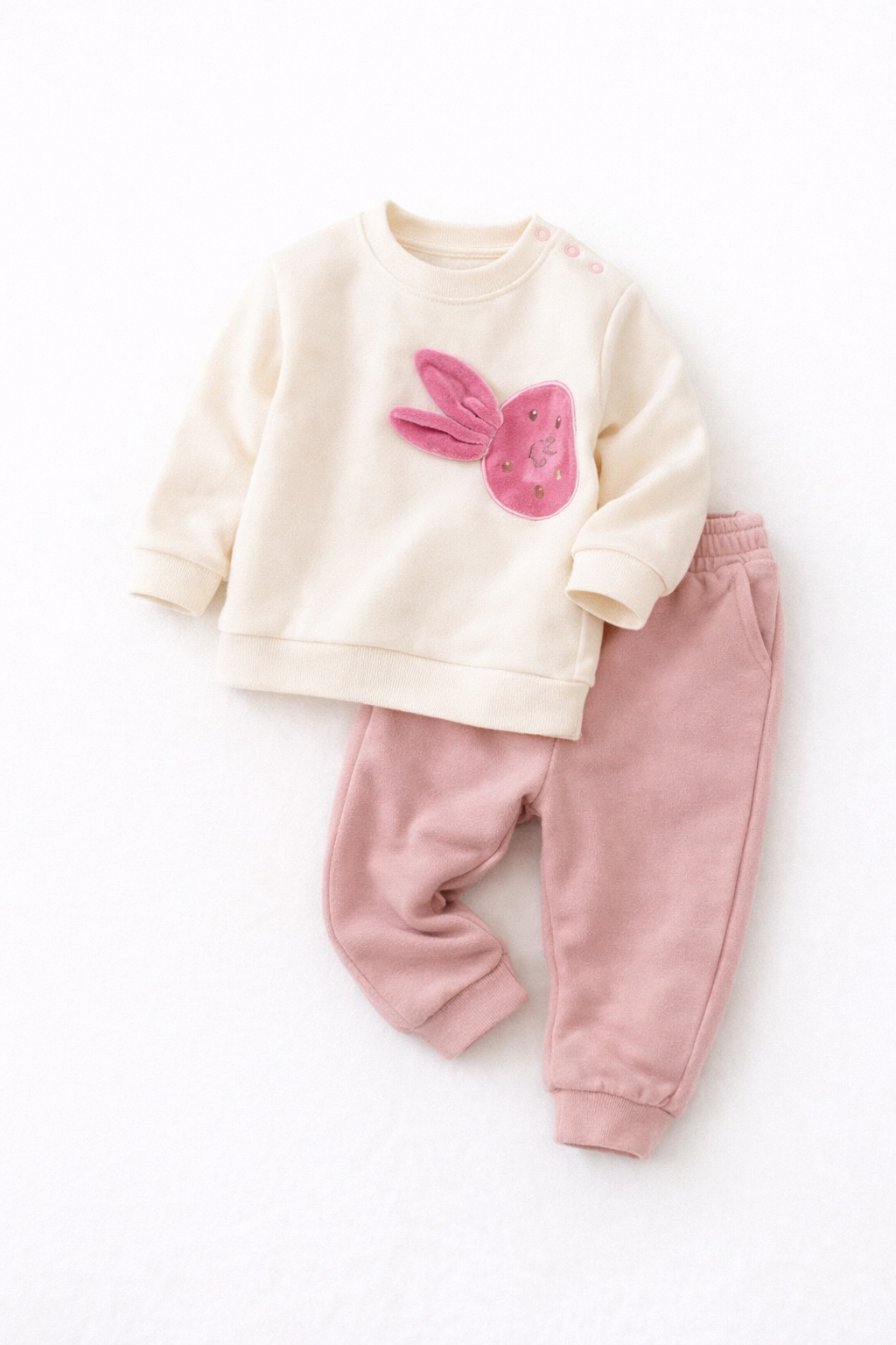 - Felpa color panna con applicazione 3D in morbido velluto a forma di coniglietto rosa 🐰