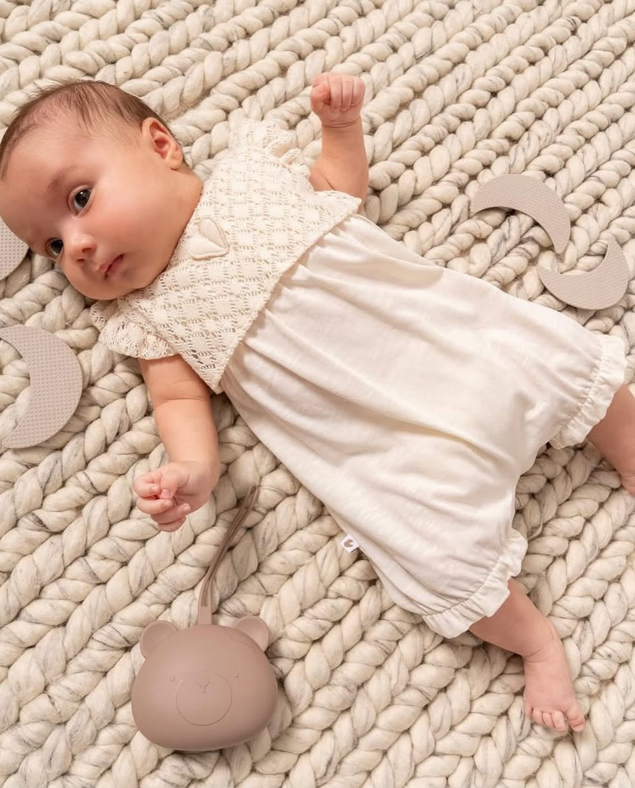 Un tocco di eleganza per la tua piccola principessa! Questa adorabile tutina estiva è perfetta per le giornate calde, offrendo comfort e stile in un delicato color beige.