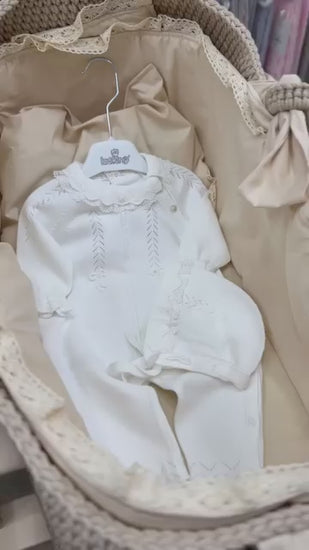 Tutina neonata con dettagli ricamati e cappello coordinato