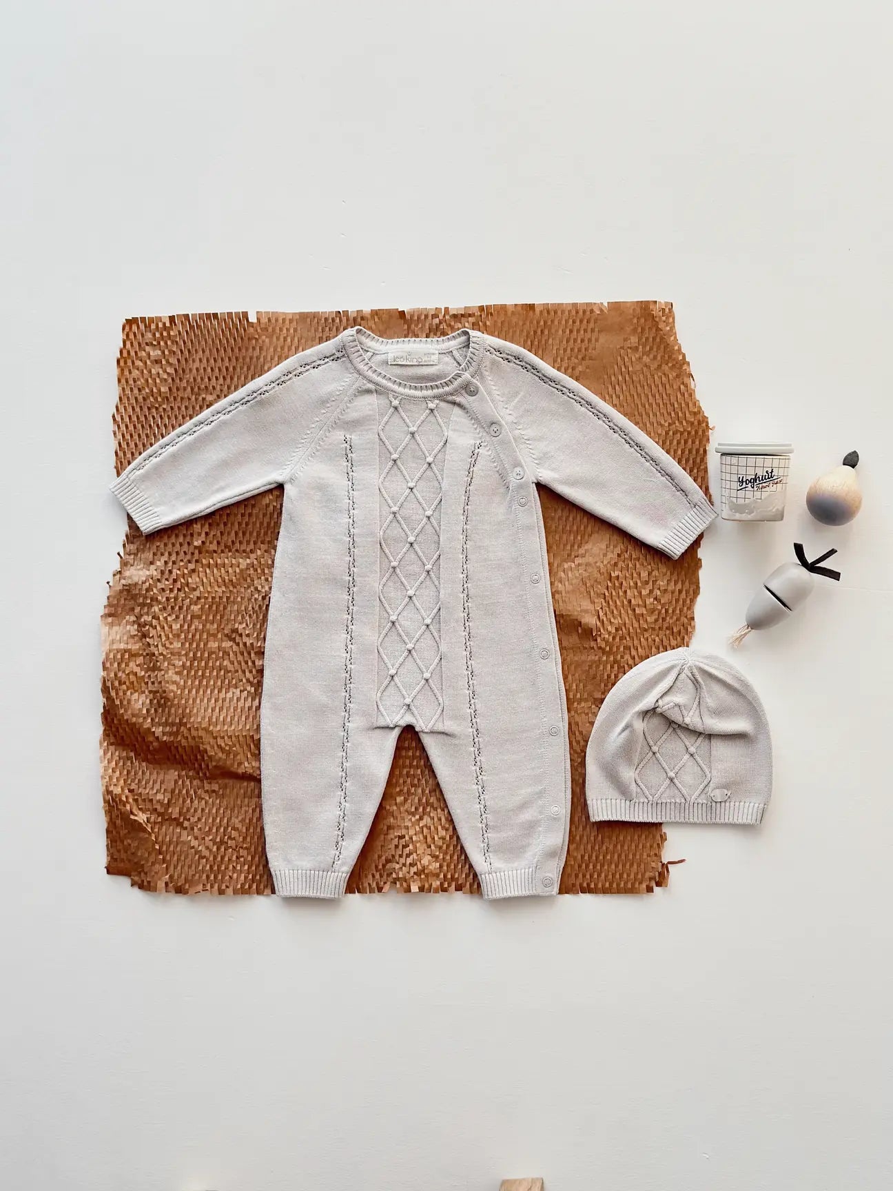 Avvolgi il tuo neonato in un abbraccio di morbidezza con questo incantevole completo in maglia bianca o grigia, perfetto per ogni occasione speciale. Realizzato con materiali di alta qualità, questo set offre un comfort impareggiabile e un look raffinato.